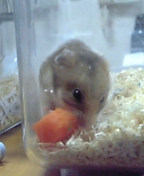 × [PR]上記の広告は3ヶ月以上新規記事投稿のないブログに表示されています。新しい記事を書く事で広告が消えます。 日曜日、ペット屋巡りをしハムスターを2匹お迎えしましたぁ まずは… 生後2ヶ月ぐらいかな~ まだハッキリとした性格は分かりませんがこの2日間の様子を見ると、とても落ち着きがない子みたでいす 自分が寝る寝床もまだ決まらずあっちこっち移動 回し車がお気に入りの様でずっと回っている たま~に思考が停止するのか急に止まりずっとそのまま そして… この子はまだ生後1ヶ月ぐらいで小さいです まだ小さいせいか寝てばかり 寝床が気に入った様でご飯もトイレも全てこの部屋で済ませ、殆ど寝床から出てきません 衛生的にも寝床をちょくちょくチェックしないと駄目だなぁ~って感じです …と言う訳で2匹をお迎えしました これでちんぺい&じんぺい&らんぺいの3匹